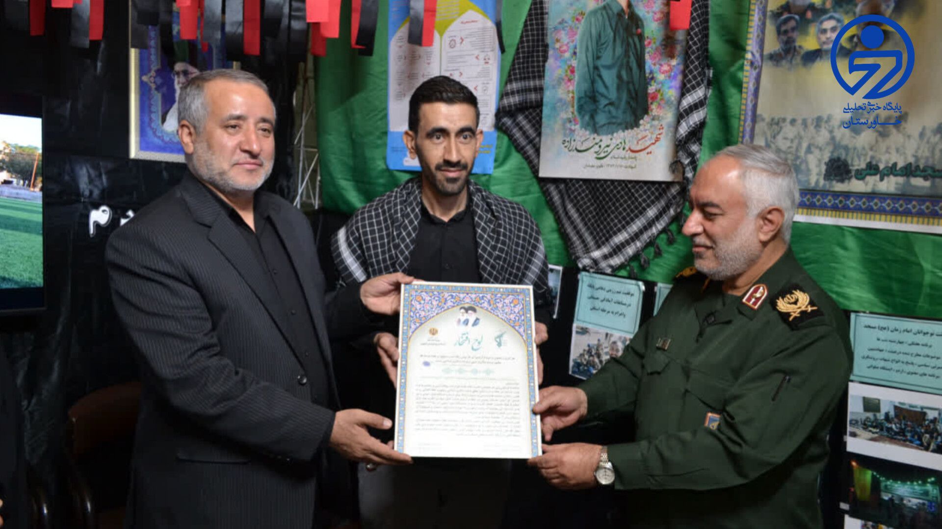 به گزارش خبرنگار پایگاه خبری تحلیلی «خاورستان»، سردار مهدوی فرمانده سپاه انصارالرضا علیهالسلام خراسانجنوبی، استاندار خراسانجنوبی به همراه هیئت همراه به مناسبت هفته بسیج از نمایشگاه اسوه بسیج بازدید کردند.